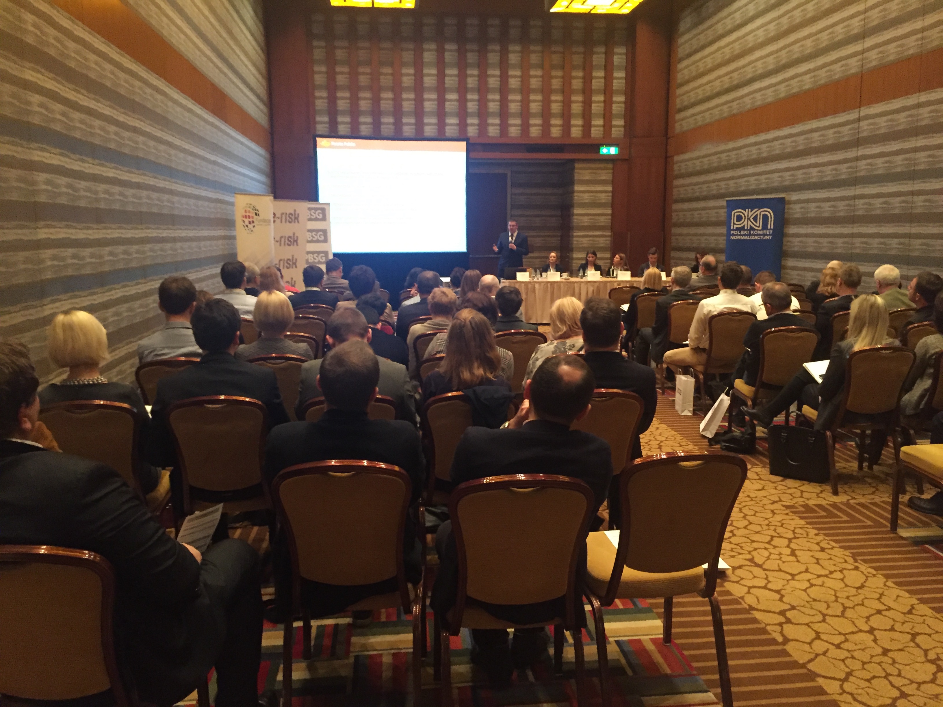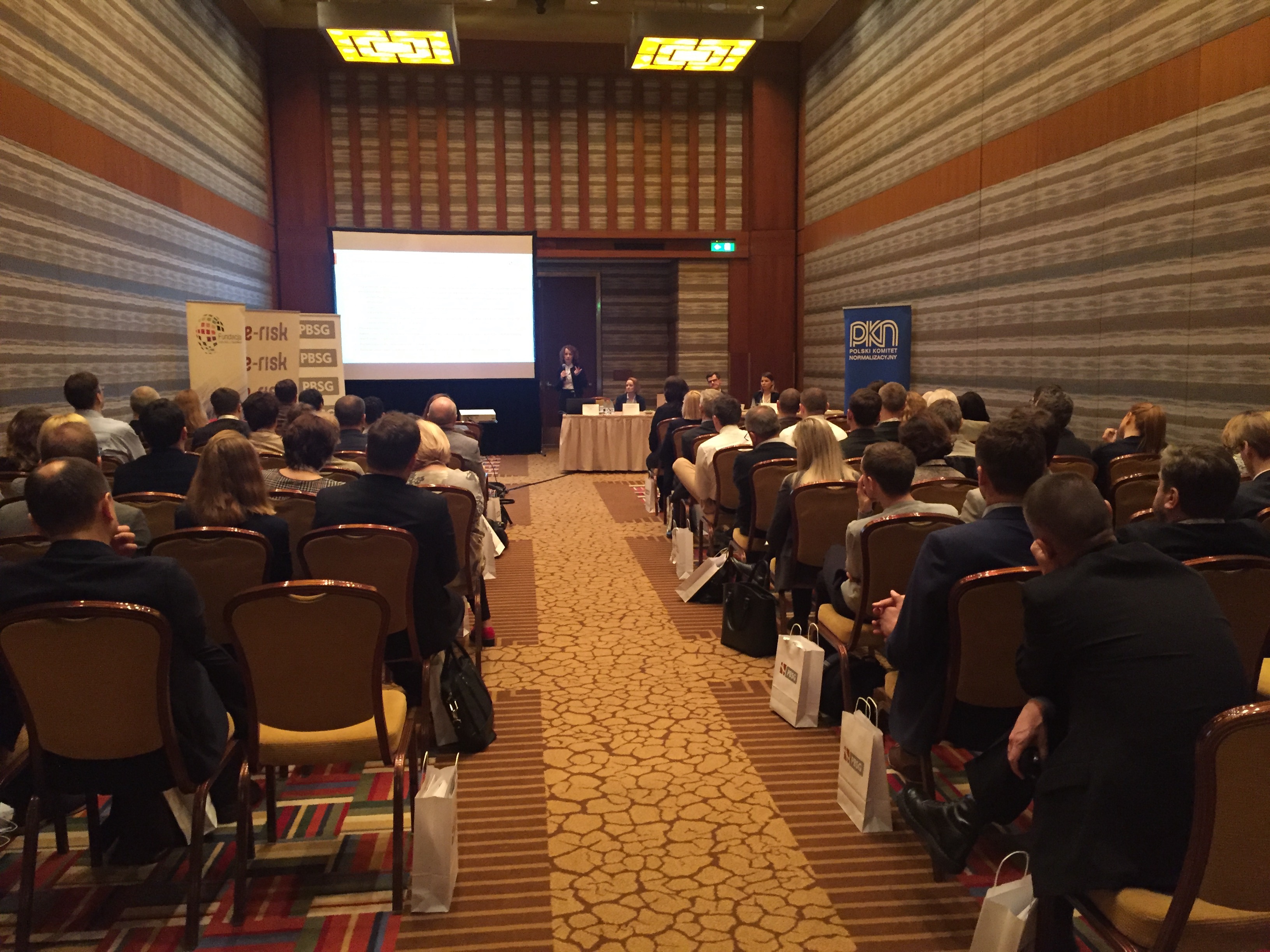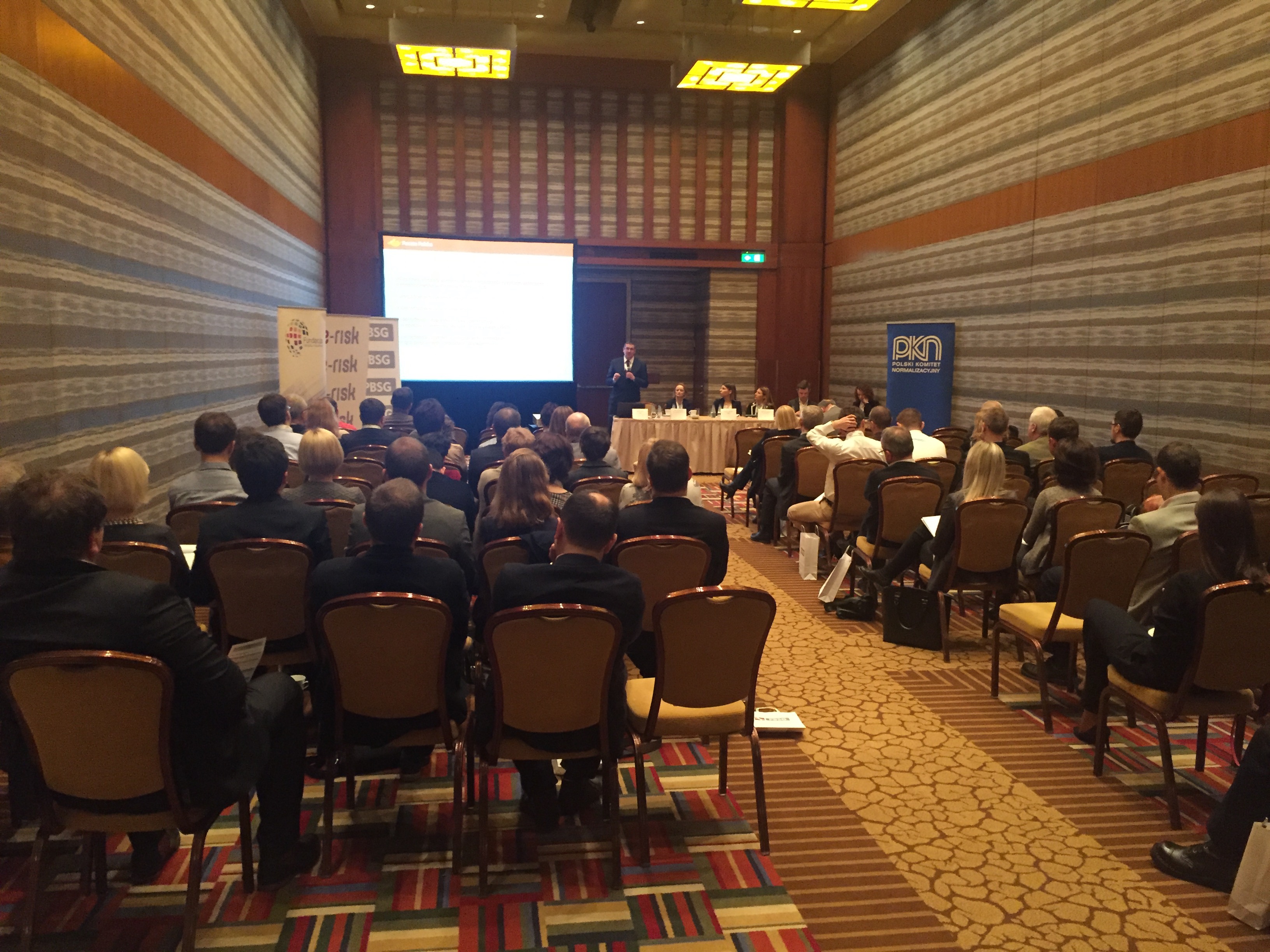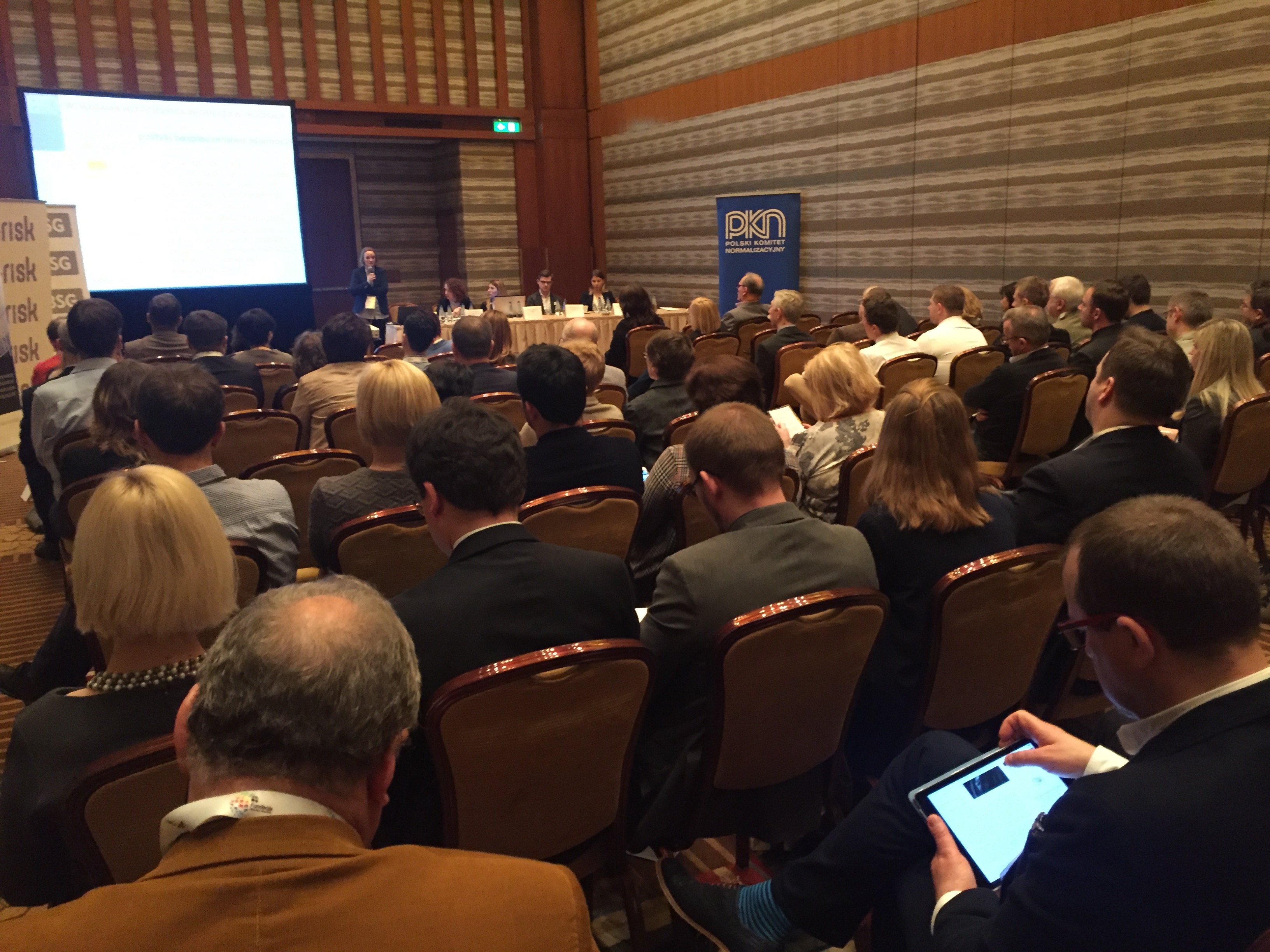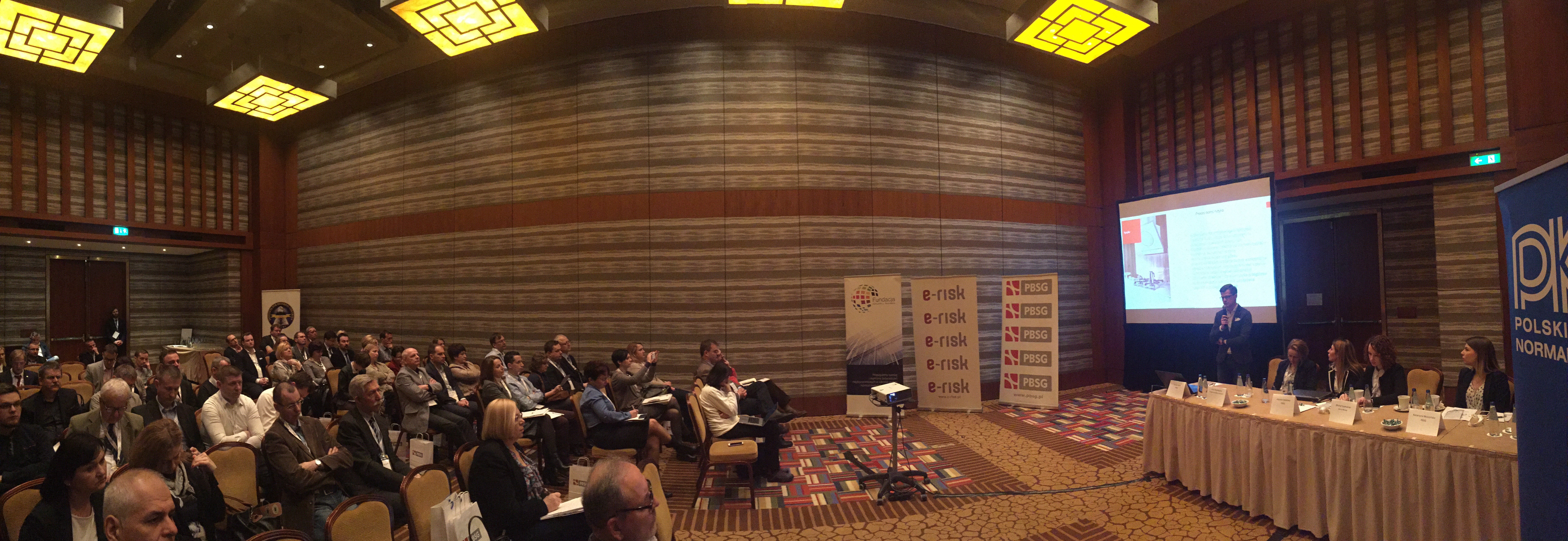 Konferencję rozpoczął wykład Pani Doroty Łobos Dyrektor Departamentu Zarządzania i Ryzyka w PBSG na temat współczesnej roli znormalizowanych systemów zarządzania ryzykiem w zarządzaniu organizacją. Podczas prelekcji wyjaśniono skąd się biorą potrzeby zarządzania ryzykiem w organizacjach sektora prywatnego oraz publicznego, dlaczego tak ważne jest zastosowanie podejścia systemowego oraz problemy z jakimi borykają się organizacje wdrażając system. Uczestnicy dowiedzieli się jakie są podstawowe założenia normy ISO 31000 oraz dlaczego standard ten jest aktualnie najpopularniejszym standardem wykorzystywanym do budowy systemów zarządzania ryzykiem w Polsce i na świecie.