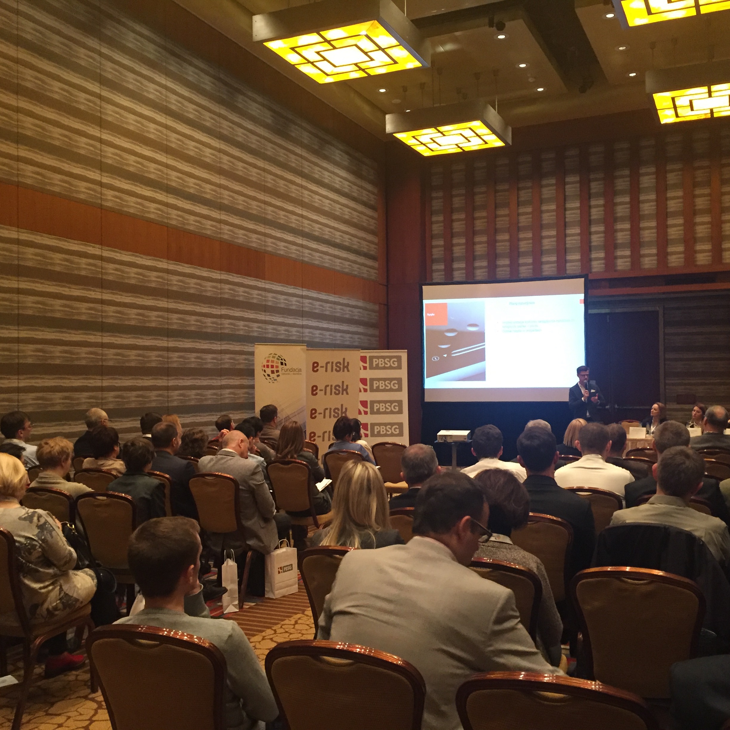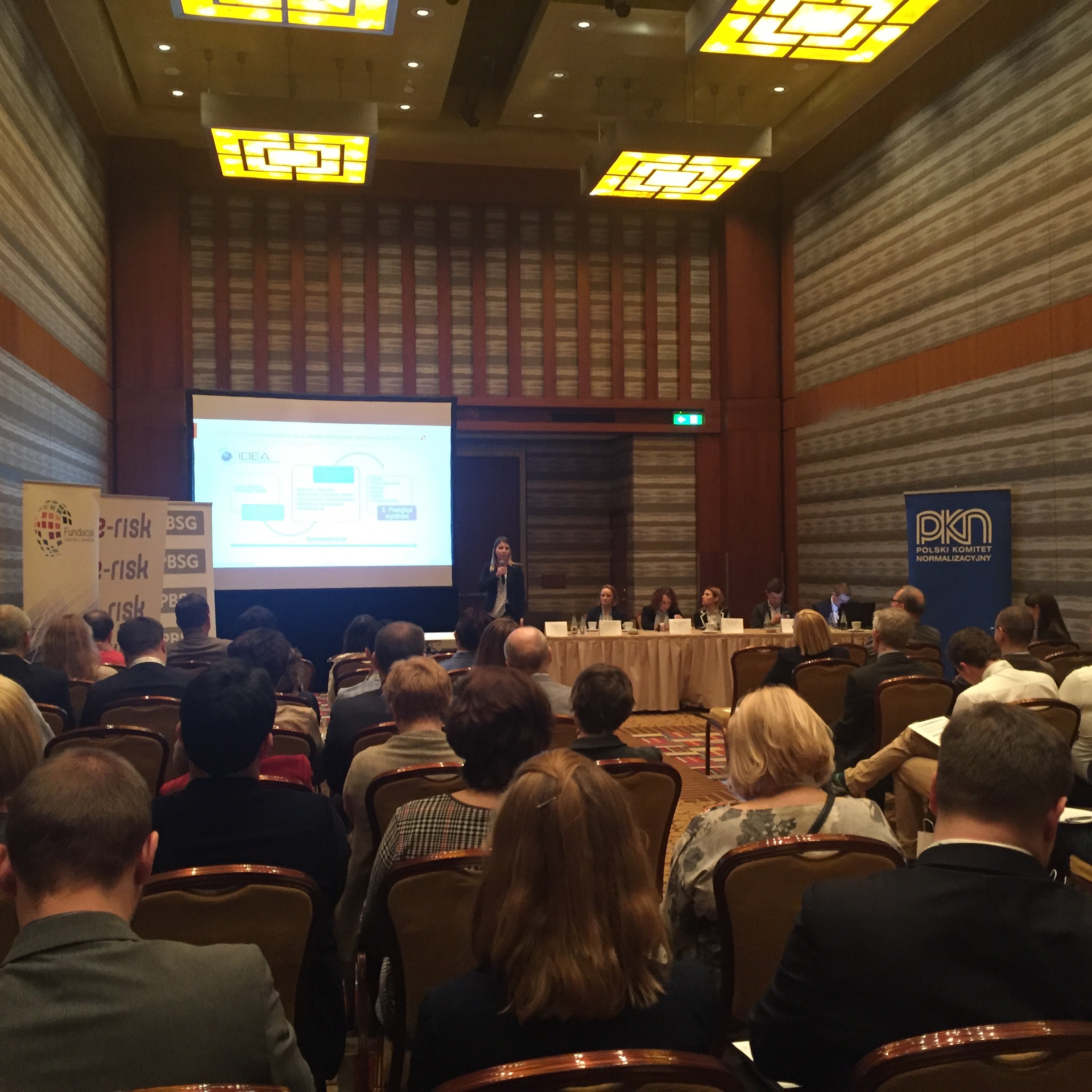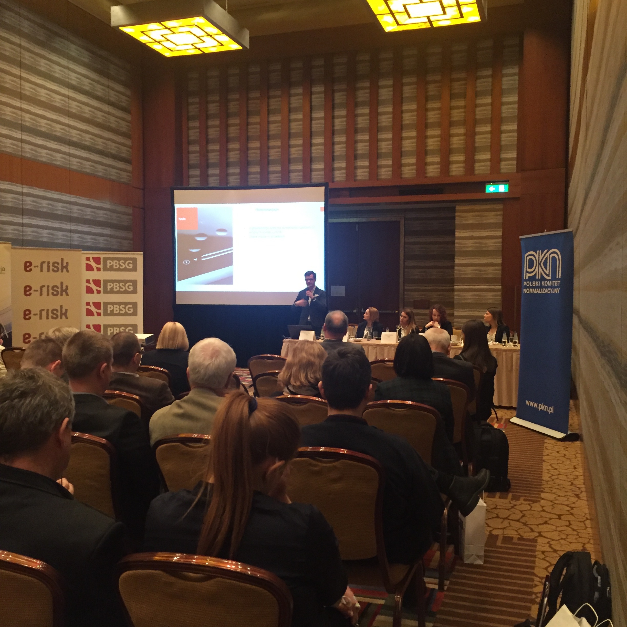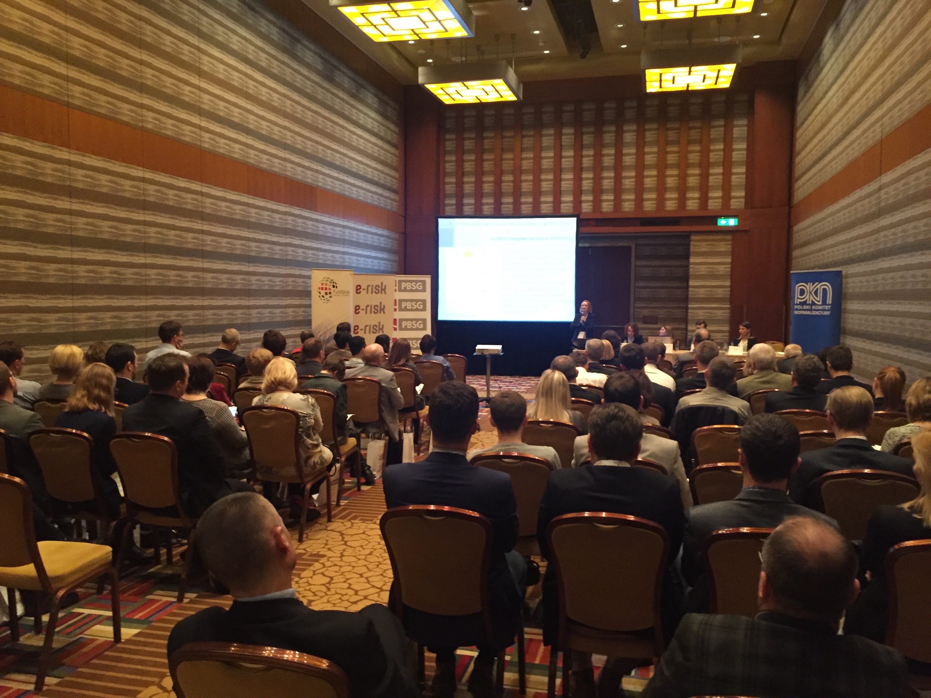 Konferencję rozpoczął wykład Pani Doroty Łobos Dyrektor Departamentu Zarządzania i Ryzyka w PBSG na temat współczesnej roli znormalizowanych systemów zarządzania ryzykiem w zarządzaniu organizacją. Podczas prelekcji wyjaśniono skąd się biorą potrzeby zarządzania ryzykiem w organizacjach sektora prywatnego oraz publicznego, dlaczego tak ważne jest zastosowanie podejścia systemowego oraz problemy z jakimi borykają się organizacje wdrażając system. Uczestnicy dowiedzieli się jakie są podstawowe założenia normy ISO 31000 oraz dlaczego standard ten jest aktualnie najpopularniejszym standardem wykorzystywanym do budowy systemów zarządzania ryzykiem w Polsce i na świecie.
