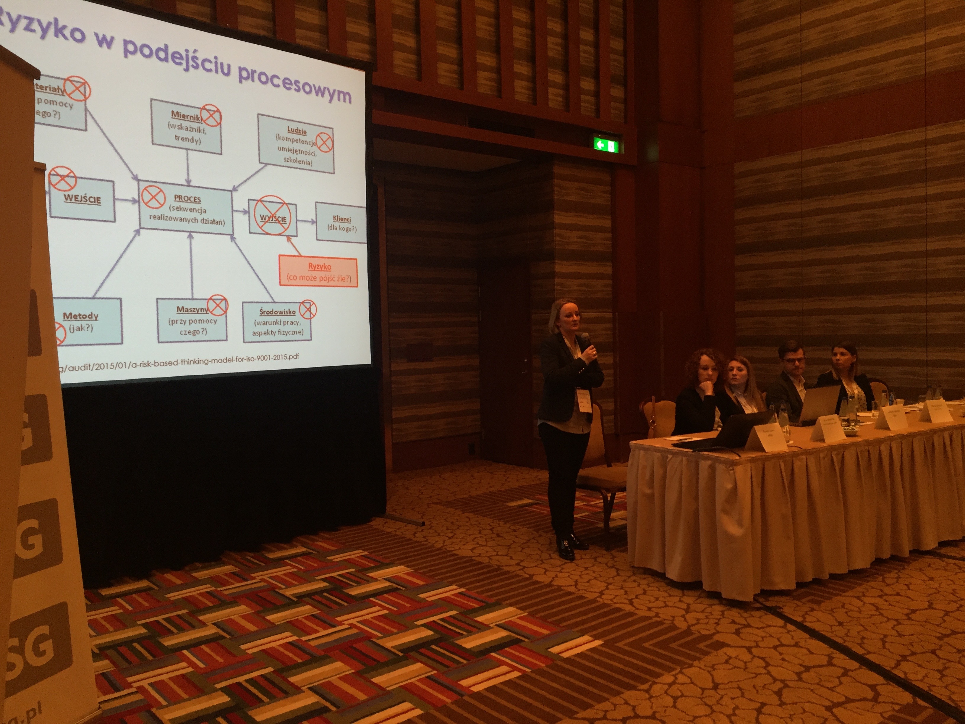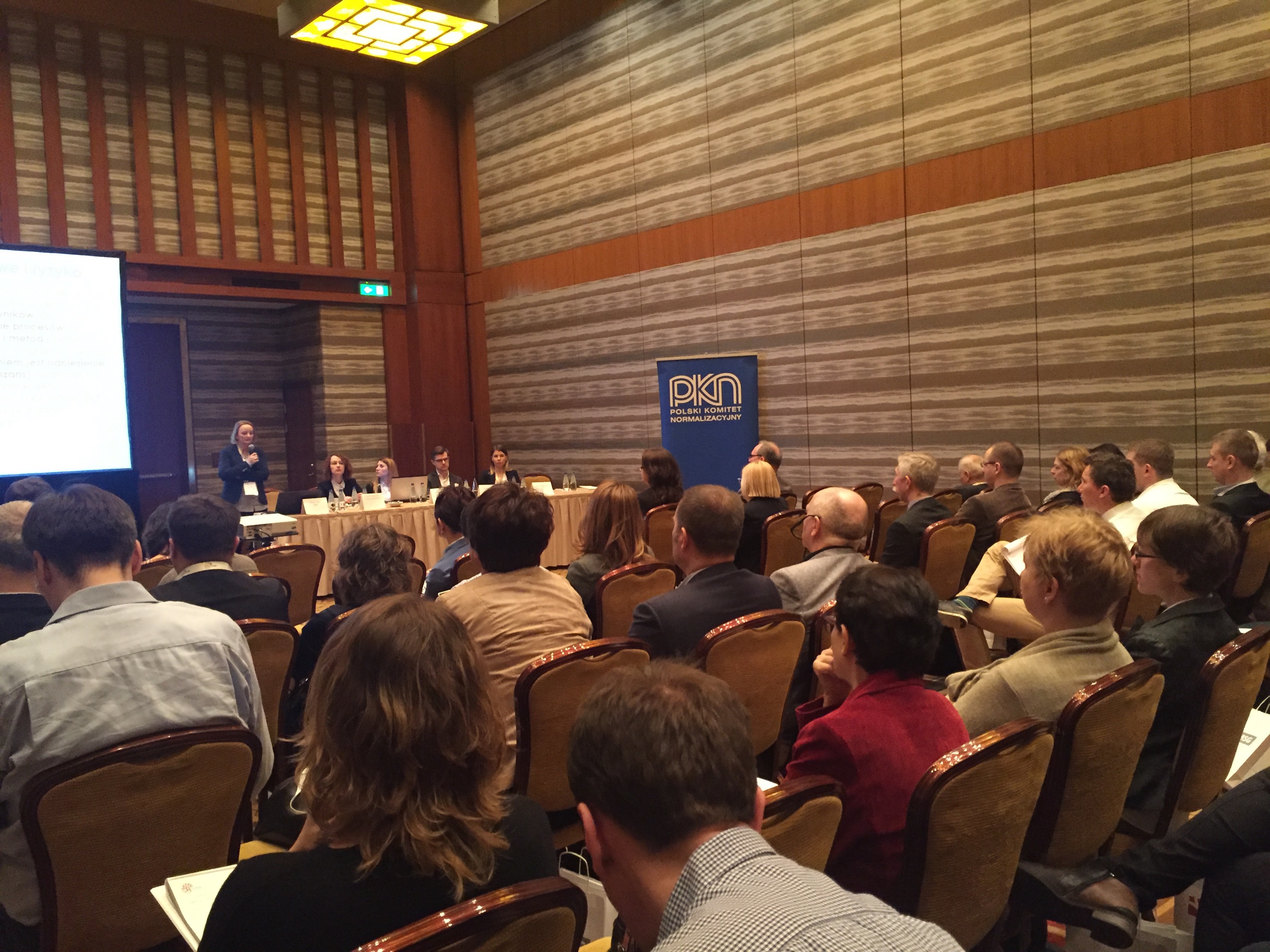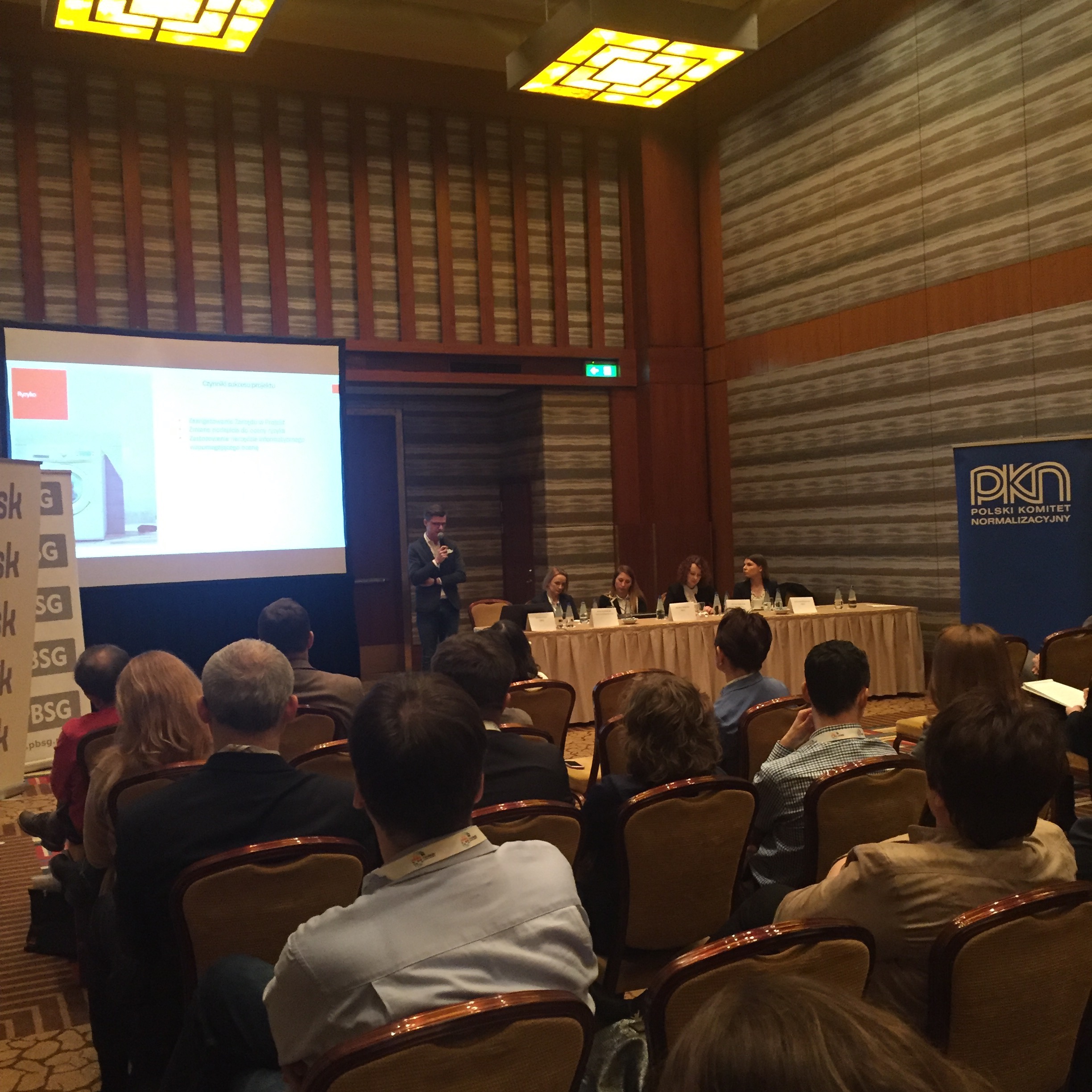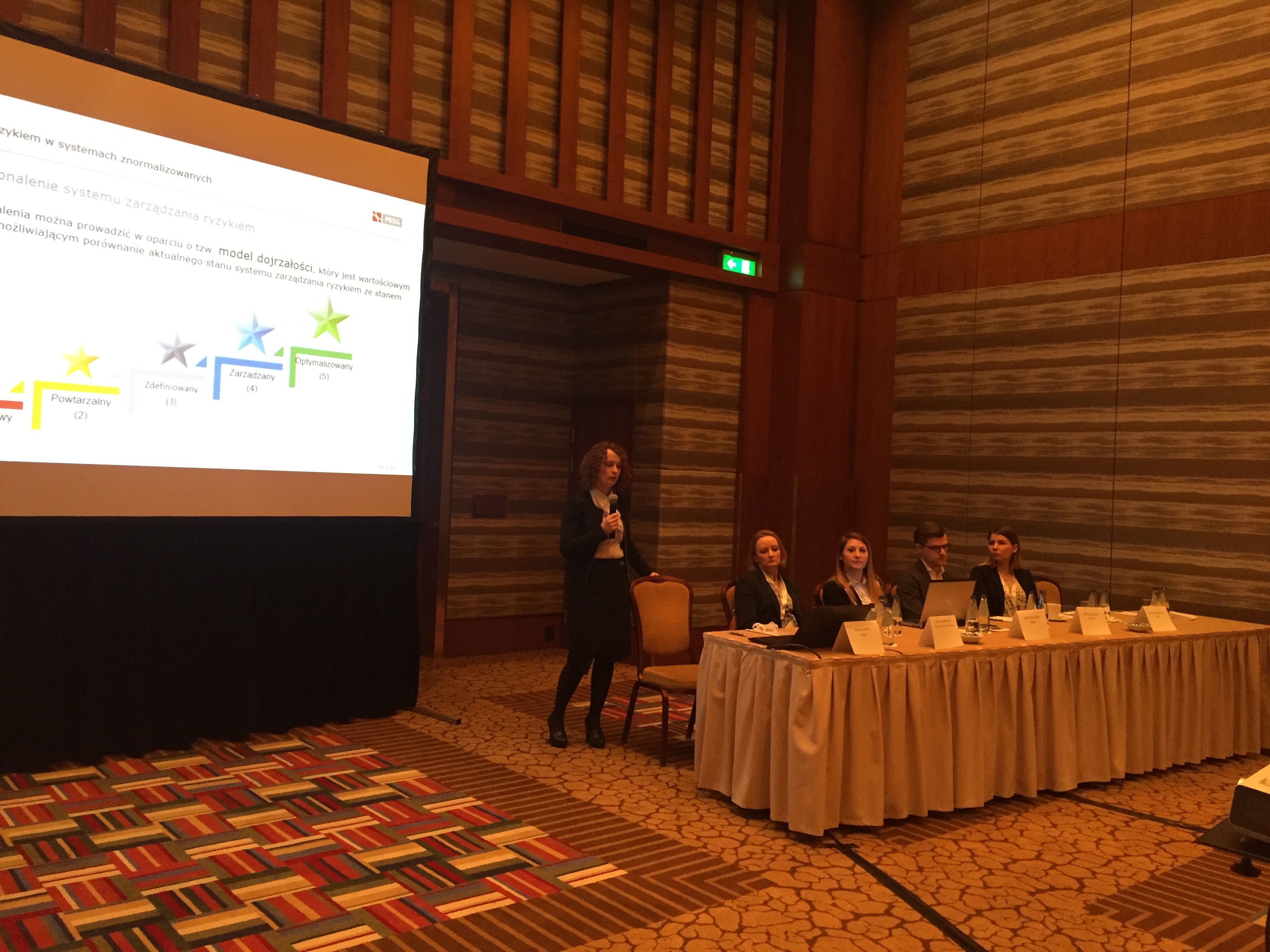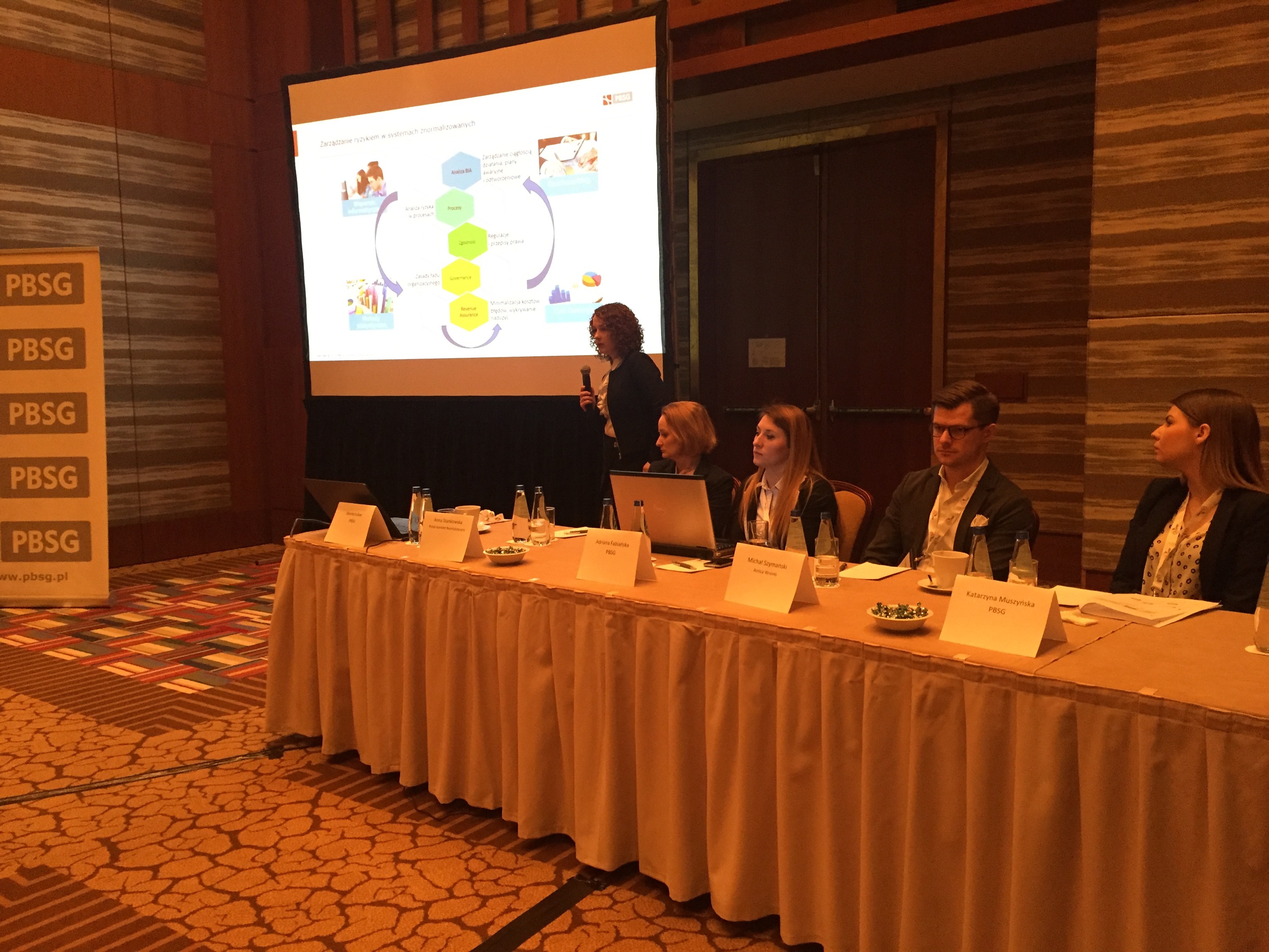 Konferencję rozpoczął wykład Pani Doroty Łobos Dyrektor Departamentu Zarządzania i Ryzyka w PBSG na temat współczesnej roli znormalizowanych systemów zarządzania ryzykiem w zarządzaniu organizacją. Podczas prelekcji wyjaśniono skąd się biorą potrzeby zarządzania ryzykiem w organizacjach sektora prywatnego oraz publicznego, dlaczego tak ważne jest zastosowanie podejścia systemowego oraz problemy z jakimi borykają się organizacje wdrażając system. Uczestnicy dowiedzieli się jakie są podstawowe założenia normy ISO 31000 oraz dlaczego standard ten jest aktualnie najpopularniejszym standardem wykorzystywanym do budowy systemów zarządzania ryzykiem w Polsce i na świecie.