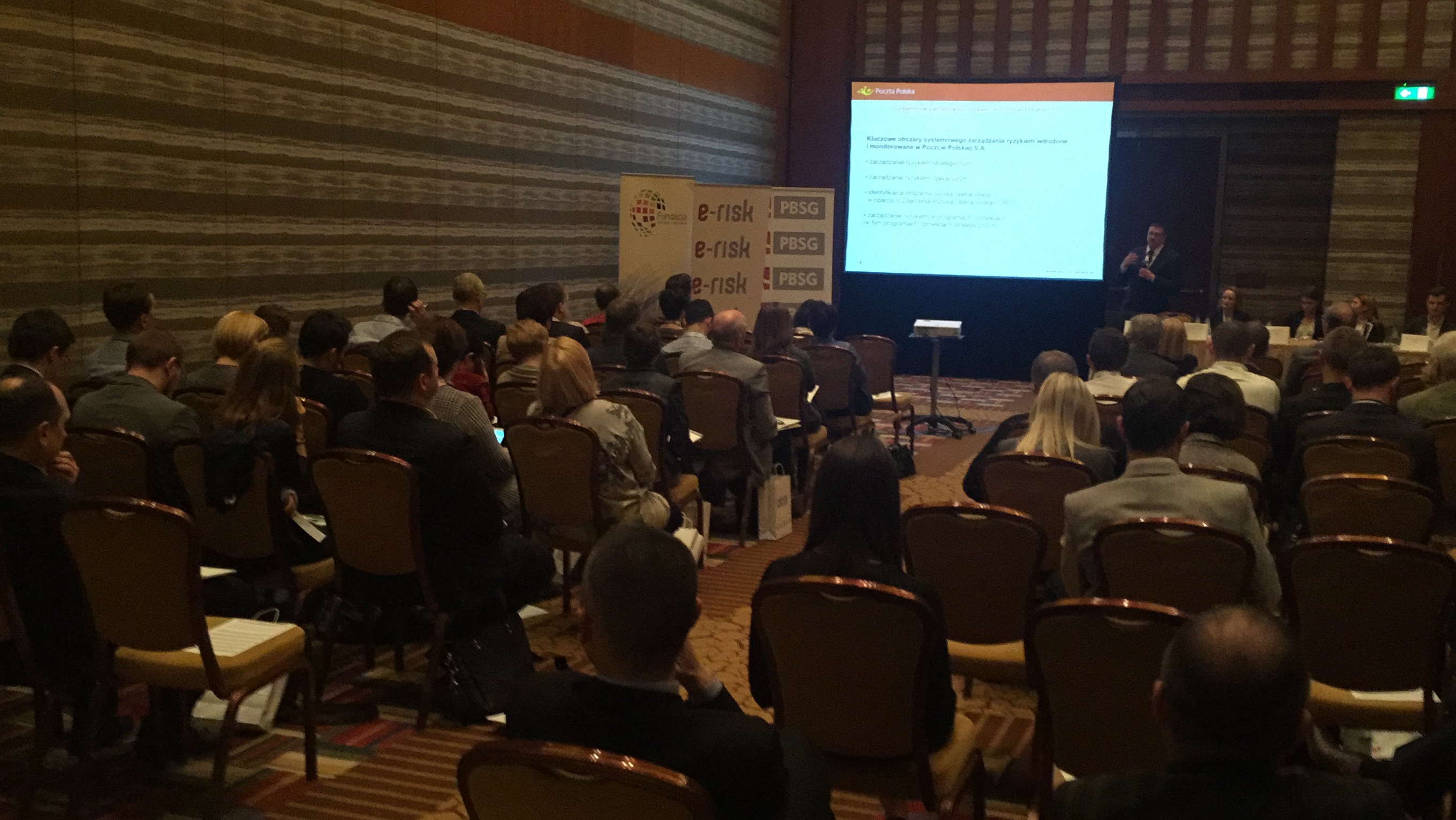 Po raz kolejny mieliśmy także przyjemność zaprosić i wysłuchać bardzo ciekawej prelekcji Pana Andrzeja Wiktorowicza Kierownika Działu Zarządzania Ryzykiem i Zgodnością Biura Ładu Korporacyjnego i Zgodności Poczty Polskiej, który podzielił się z uczestnikami doświadczeniami z pierwszej w Polsce certyfikacji systemu zarządzania ryzykiem zgodnego z wymaganiami normy ISO 31000. W praktyczny sposób przedstawił funkcjonujące w Poczcie Polskiej S.A. rozwiązania w zakresie zarządzania ryzykiem, trudności z jakimi boryka się organizacja chcąca systemowo zarządzać ryzykiem i zatrudniająca jednocześnie ponad 70 000 pracowników. Szczególną uwagę uczestników zwróciło praktyczne ujęcie korzyści jakie Poczta Polska uzyskuje dzięki wdrożeniu, utrzymywaniu oraz doskonaleniu systemu zarządzania ryzykiem – czytaj więcej o wręczeniu pierwszego w Polsce certyfikatu ISO 31000 >