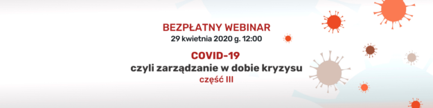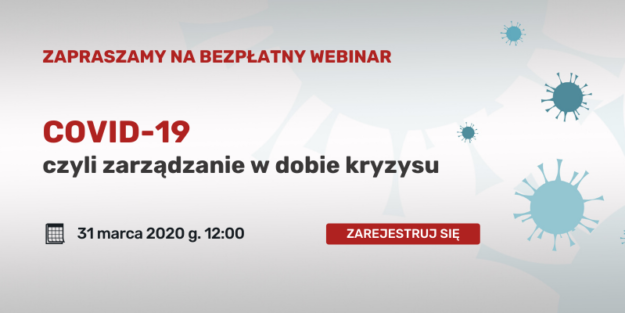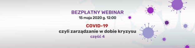 15.05.2020 12:00 Rejestracja COVID-19 – Jak zarządzać organizacją w dobie globalnego kryzysu – część 4 Zapraszamy na kolejne spotkanie z cyklu „COVID-19 czyli zarządzanie w dobie kryzysu”. Wychodząc naprzeciw oczekiwaniom i tym razem podejmiemy kluczowe dla Państwa organizacji tematy, które wskazali uczestnicy poprzednich webinariów w wypełnionych ankietach. Podczas najbliższego spotkania chcemy podsumować dotychczasowe rozważania i…